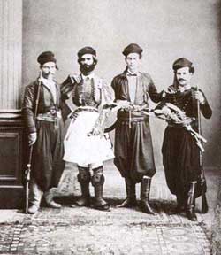 διέθεσε στο μεγαλύτερό της μέρος για τον αγώνα του Έθνους αφού υπήρξε και από τα πρώτα μέλη της Φιλικής Εταιρείας . Στις 31-3-1821 και όταν ο μικρός Φίλιππος ήταν μόνο 11 χρονών οι γονείς του τον πήραν μαζί με τα 5 αδέλφια του και διέφυγαν νύχτα στα Ψαρά και από εκεί όλη η οικογένεια κατέληξε στη Ρώμη ύστερα από πληροφορίες ότι οι Τούρκοι σκόπευαν να τους δολοφονήσουν λόγω της της συμμετοχής του πατέρα τους στον Αγώνα .Επιστρέφουν στην Ελλάδα με την απελευθέρωση και τον ερχομό του Καποδίστρια .Ο μικρός Φίλιππος σπουδάζει ζωγραφική στην Ακαδημία της Ρώμης με έξοδα του Ελληνικού κράτους για την προσφορά του πατέρα του στον Αγώνα .Αντίστοιχες σπουδές κάνει και ο αδελφός του Γεώργιος στο Παρίσι .Σαν πρώτη περίοδο του έργου του θεωρείται το διάστημα που δούλεψε μόνος του 1853-1868. Ο Φίλιππος Μαργαρίτης ήταν ο πρώτος επαγγελματίας Έλληνας φωτογράφος .Ένας επιτυχημένος ζωγράφος που στρέφεται προς τη φωτογραφία και δημιουργεί ένα καλό όνομα και πελατεία . Στο πρώιμο έργο του διακρίνουμε έντονα τη ματιά του ζωγράφου αλλά και την τεχνική επέμβαση (ρετούς) πάνω στο τελικό αποτέλεσμα . Στο φωτογραφείο του αποθανατίστηκαν μέλη της βασιλικής Αυλής , αγωνιστές της Επανάστασης ,κληρικοί, επώνυμοι της Αθηναϊκής κοινωνίας , πολιτικοί αλλά και απλοί πολίτες .Στην αρχή σφραγίζει τις φωτογραφίες του με μία οβάλ μικρή σφραγίδα που γράφει το όνομά του στα Γαλλικά και αργότερα χρησιμοποιεί μία τυπωμένη ετικέτα σα γραμματόσημο που κολλά πίσω από τις φωτογραφίες του και αναφέρει :ΦΙΛΙΠΠΟΣ ΜΑΡΓΑΡΙΤΗΣ . ΦΩΤΟΓΡΑΦΟΣ . ΠΛΑΤΕΙΑ ΝΟΜΙΣΜΑΤΟΚΟΠΕΙΟΥ 585 . ΑΘΗΝΑ . Δίδαξε επί 25 χρόνια στη Σχολή Καλών Τεχνών του Πολυτεχνείου.Πέθανε το 1892. |